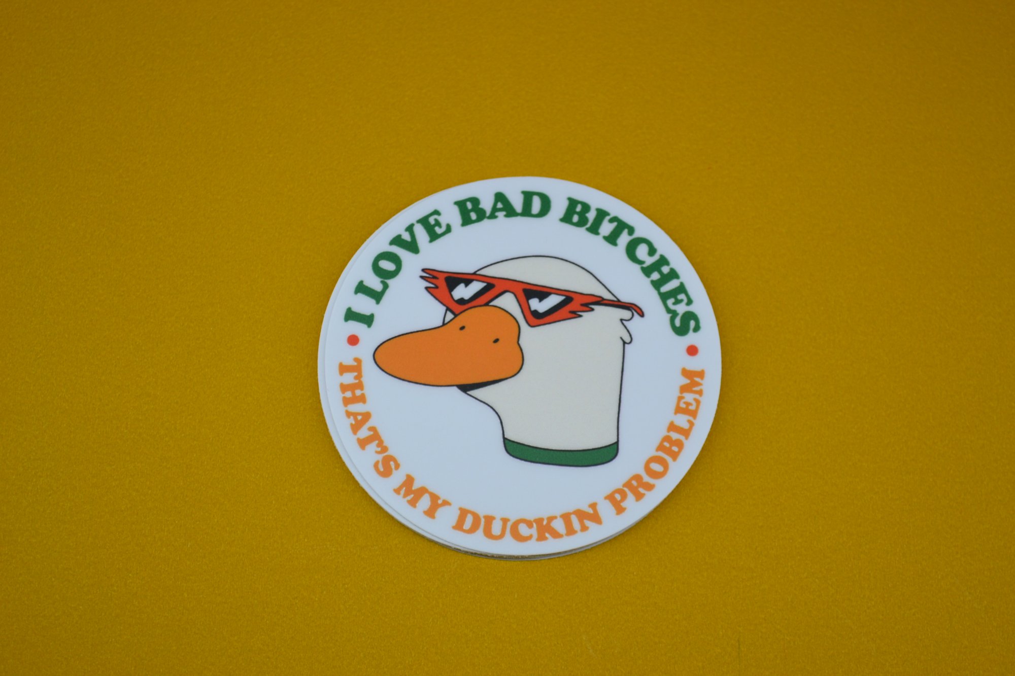 I LOVE BAD BITCHES that's my duckin problem Vinyl Sticker 3in